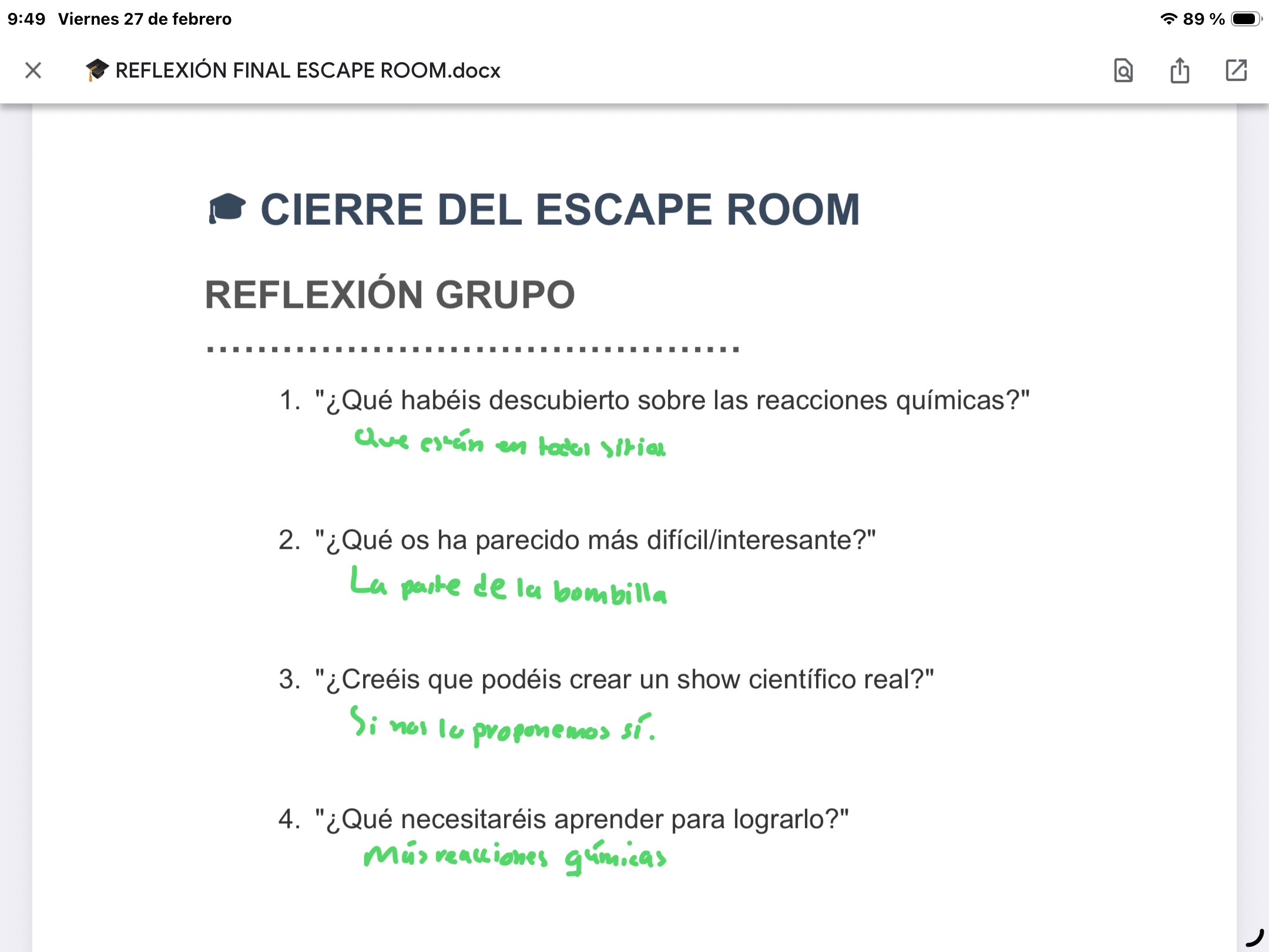 Actividades introductorias de metacognición y reflexión que establecieron las bases metodológicas para el desarrollo científico.